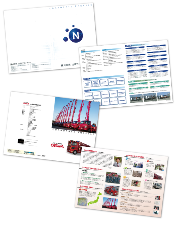 今までも会社案内、商品パンフレットなど多数手がけてきましたが、時代の流れから今まではデザイン的に優れているものが要求されてきましたが、これからは、目的達成のための会社案内・パンフレットの作成が要求される時代になりました。その時流を弊社は一早くつかみ、具現化しています。